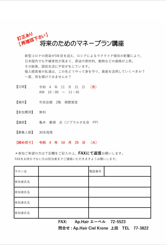 「将来のためのマネープラン講座」