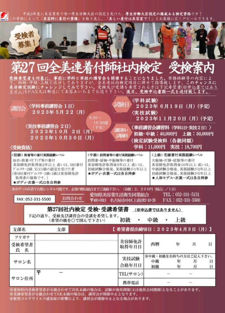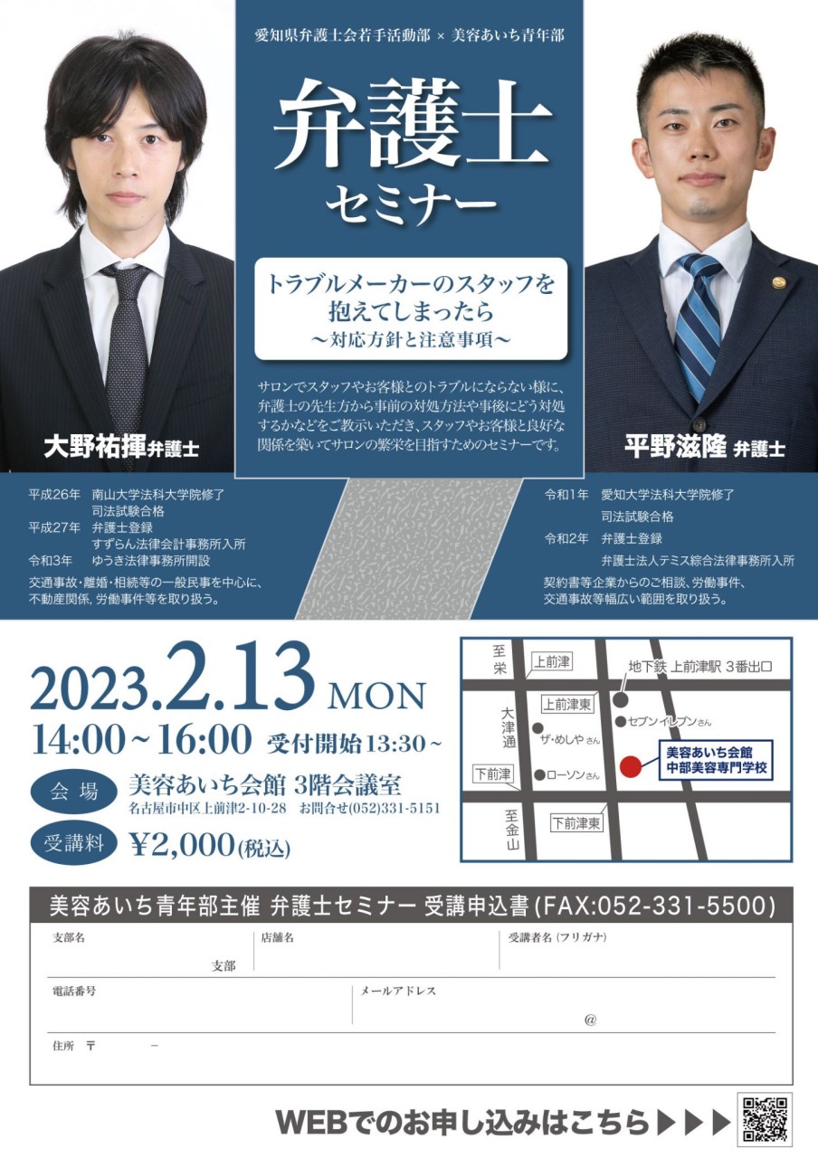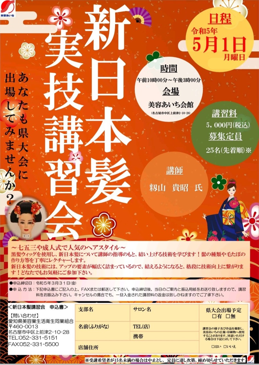 いつも大変お世話になっております。美容あいちでは下記の通り、講習会やセミナーを準備しております。この機会に是非ご参加いただき、技術や知識習得にご活用いただければ幸いです。お問い合わせは、美容あいち( 052-331-5151)までお願い致します。