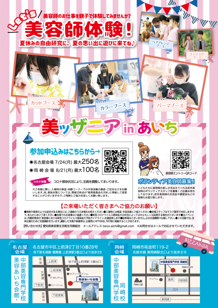 昨年大好評だった美容師体験イベント・美ッザニアinあいちを今年も開催いたします。